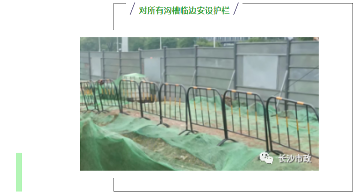 在现场巡检抽查中,工程管理部的驻点人员到岗率达 100%;部分项目现场已基本达到“8 个 100%”的要求;部分项目仍在积极采取措施,持续整改优化;在建项目参与率 100%,施工现场环境治理初见成效。但仍发现存在局部绿网覆盖不严密;部分垃圾未及时清理或绿网覆盖;个别工点临边防护不到位;围挡未完全围蔽,局部有破损;个别工点非道路移动设备未张贴环保标牌;便道临边部位钢筋头外露,存在安全隐患;未按TN-S实行一机一箱一锁的问题。